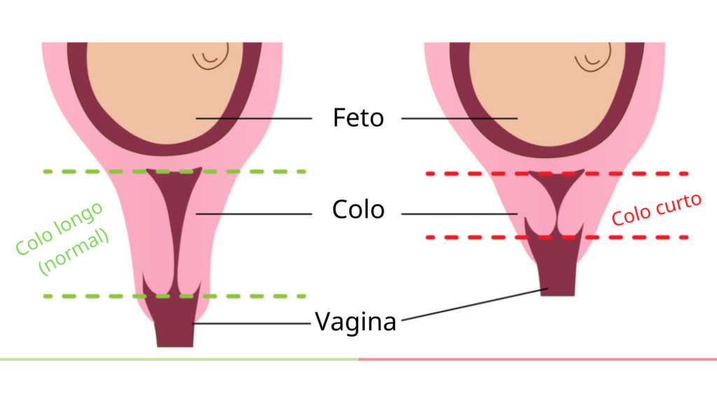 Um colo enfraquecido pode abrir antes do tempo e isso causar um parto prematuro, ou até mesmo um abortamento tardio (quando acontece entre 12 e 20 semanas de gestação). Antes de ocorrer a dilatação do colo, ele pode ficar mais curto ou ir abrindo de dentro pra fora, o que chamamos de afunilamento. Então em vez de um colo fechado e longo, temos um colo curto com ou sem afunilamento que tem um maior risco de abrir antes da hora.